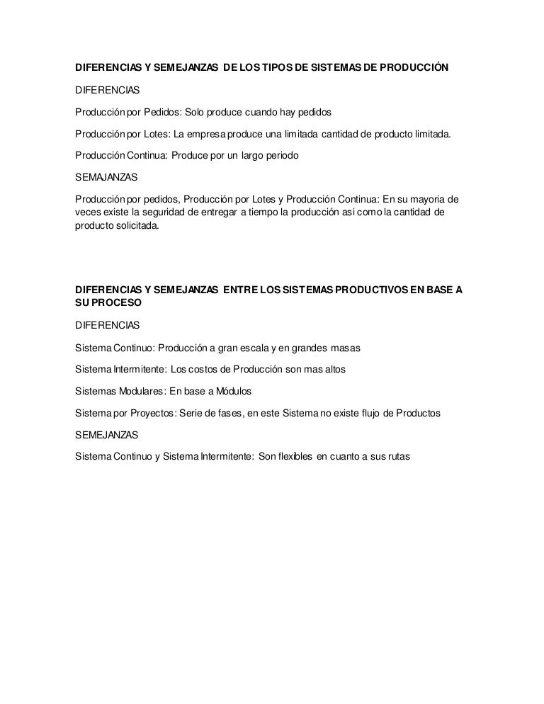 Diferencias Y Semejanzas De Los Tipos De Sistemas De Produccion
