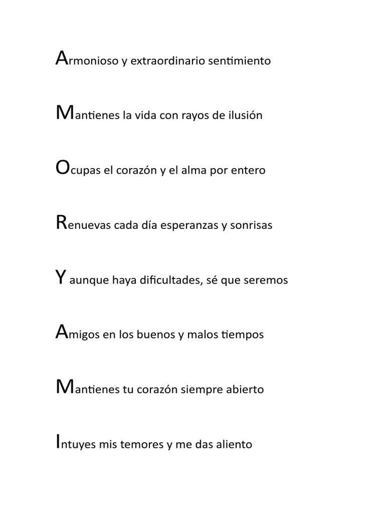 Acróstico de Amor y Amistad. Mis ojos te ven y dicen.