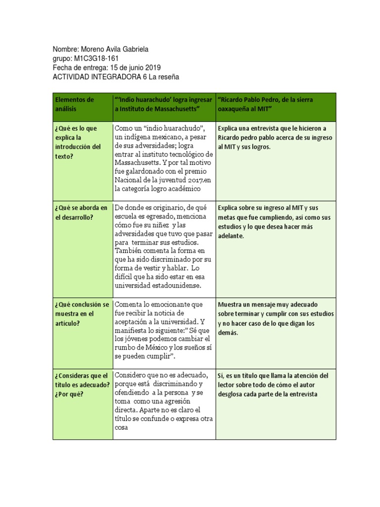 Chavezalcibar Miriammaythe M2s3ai6 Actividad Integradora 6 La Rese U00f1a Elementos De An U00e1lisis U201c U2018indio Huarachudo U2019 Logra Ingresar A Instituto Course Hero