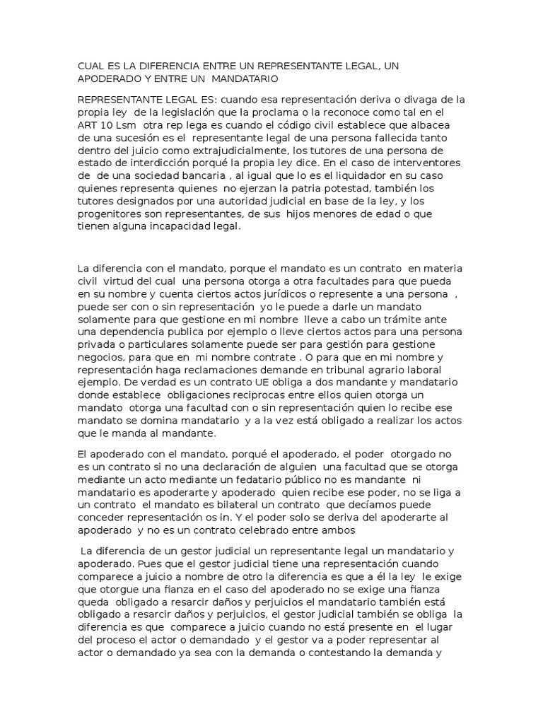 Cual Es La Diferencia Entre Un Representante Legal Un Apoderado Y Entre Un Mandatario Pdf Demanda Judicial Ley Estatutaria