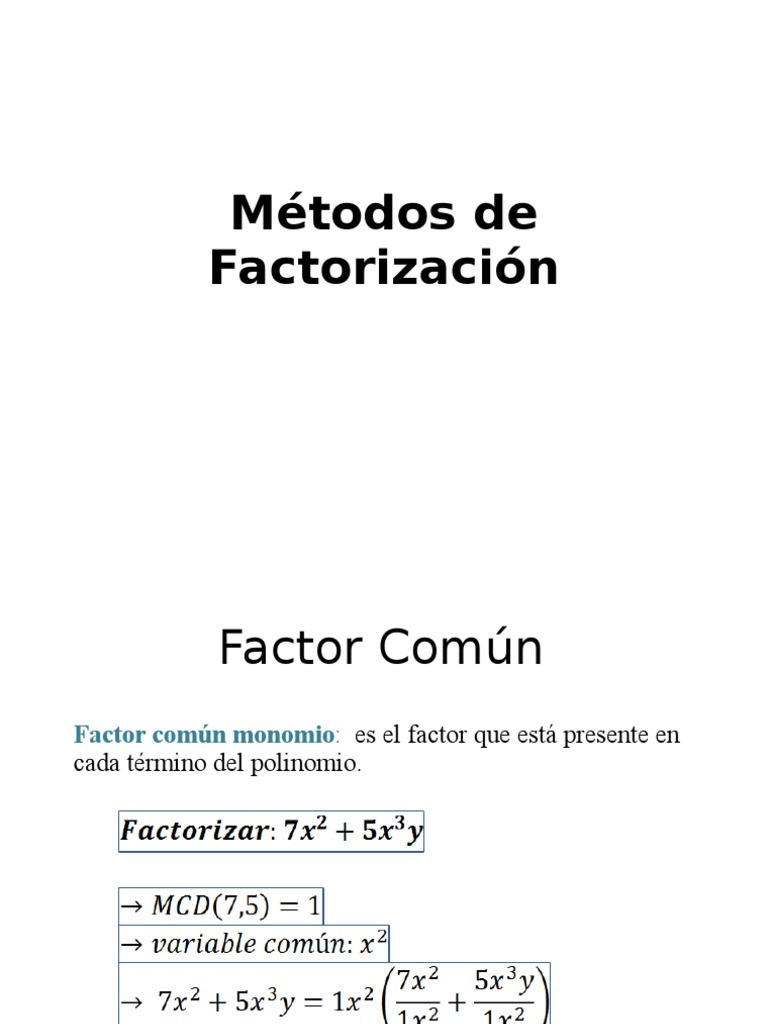 Factorizacion Metodos Ejemplos Y Ejercicios Resueltos De Secundaria Pdf