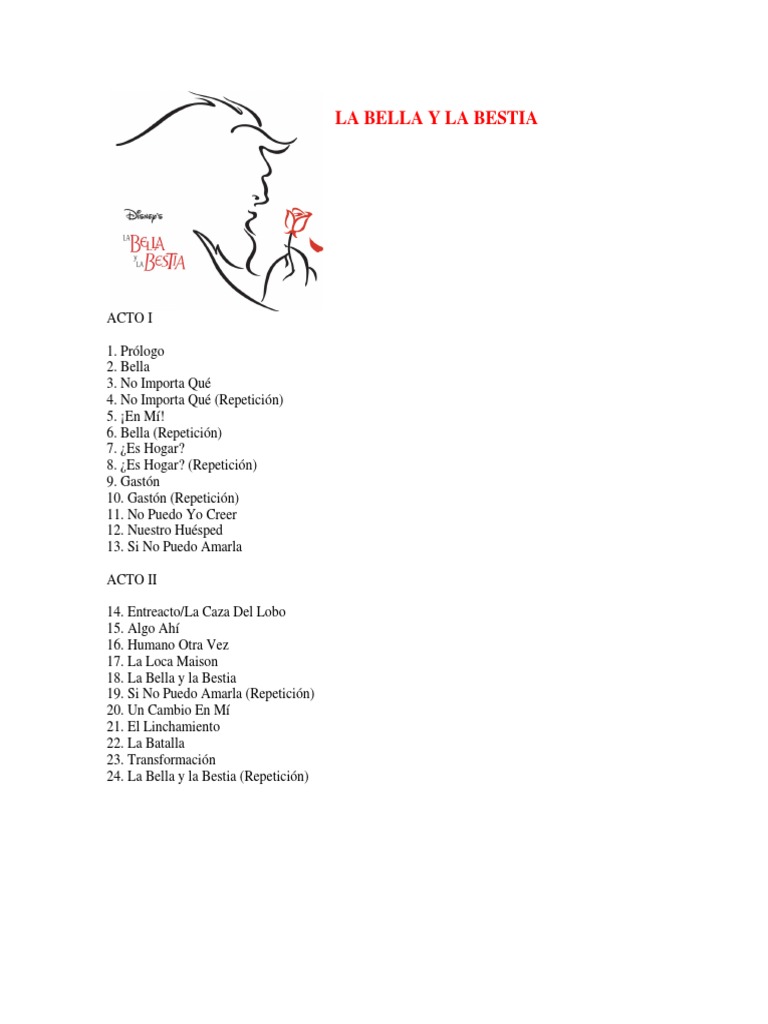 La Bella Y La Bestia Libreto Resumido Pdf