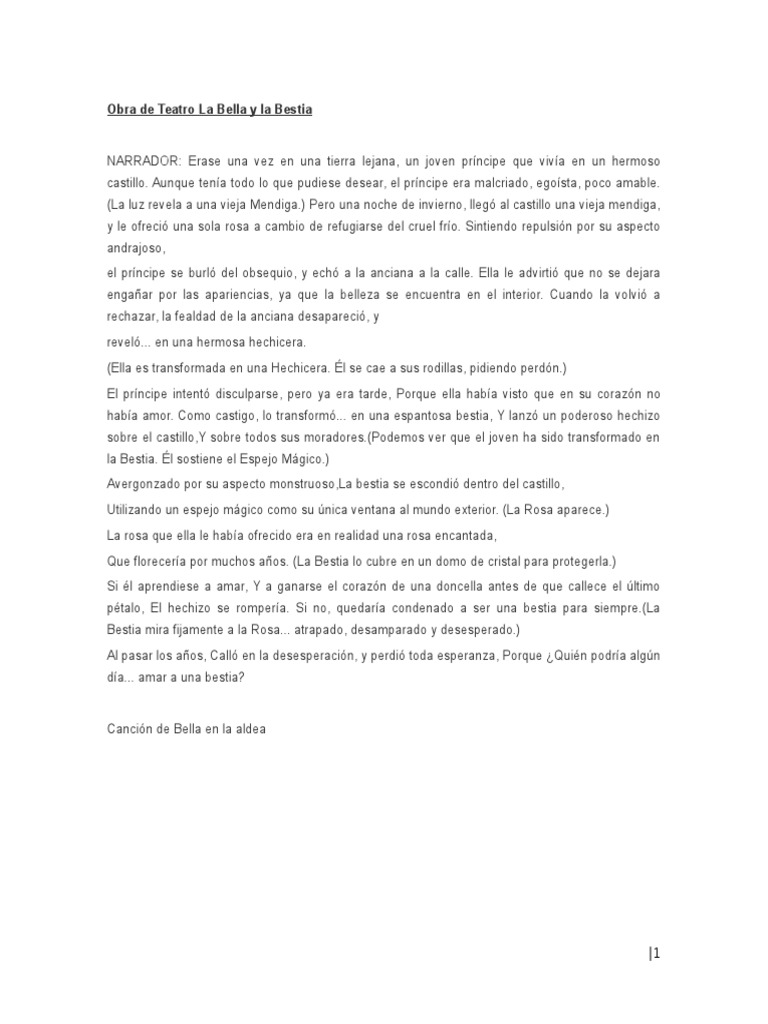La Bella Y La Bestia Obra De Teatro Corta Para Ninos Pdf