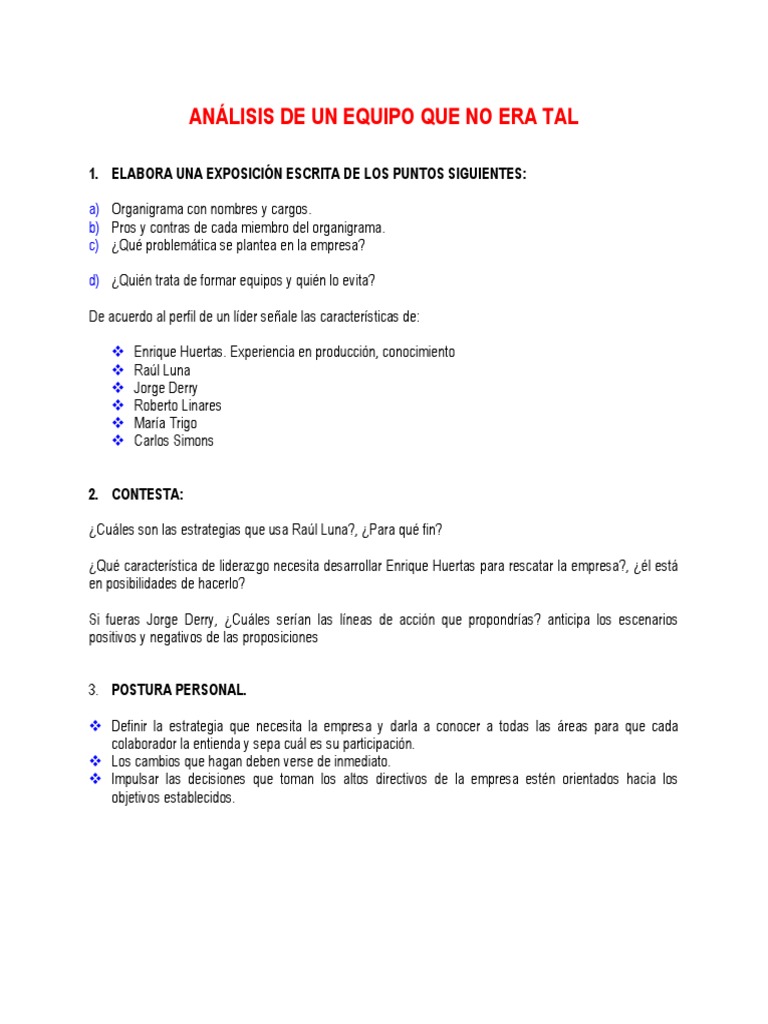 Un Equipo Que No Era Tal Analisis Y Desarrollo De Caso Practico Ensayos Mikki