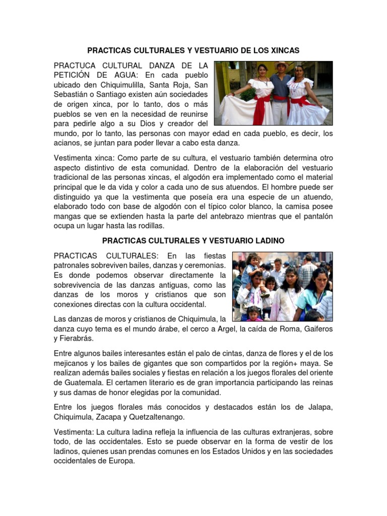 Practicas Culturales Y Vestuario De Los Xincas Ladinos Garifunas Mayas Introduccion Conclusion Etc Pdf Centroamerica Sociedad
