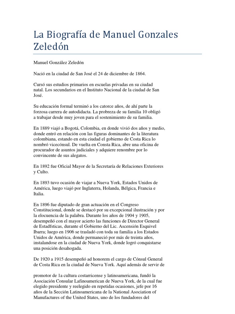La Biografia De Manuel Gonzales Zeledon Pdf Costa Rica