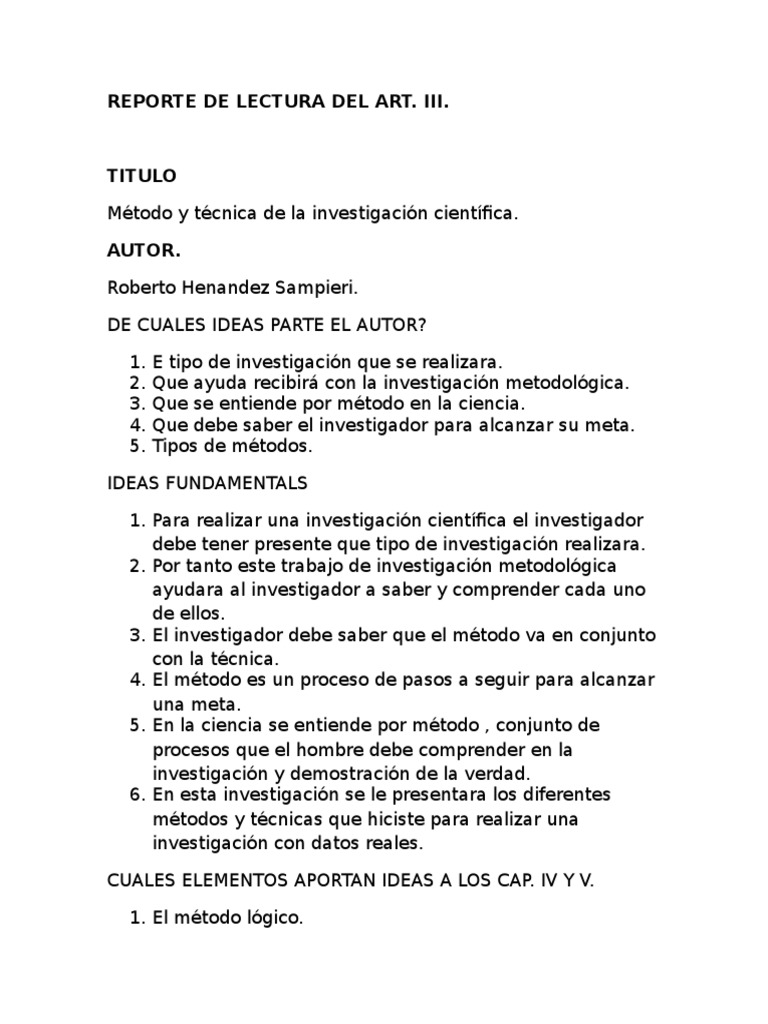 Reporte De Lectura Del Art Pdf Metodologia Conocimiento