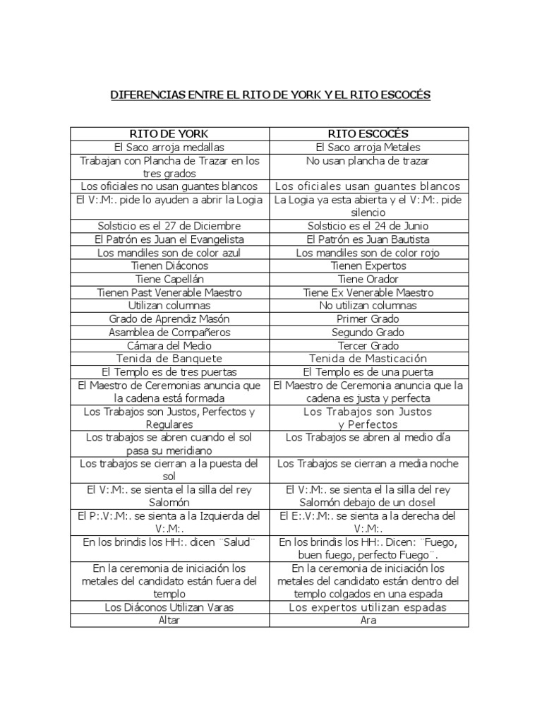 Masoneria Diferencia Entre Rito De York Y Rito Escoces Pdf Fraternidades Esoterismo Occidental