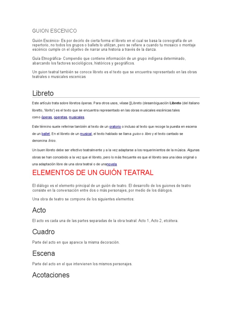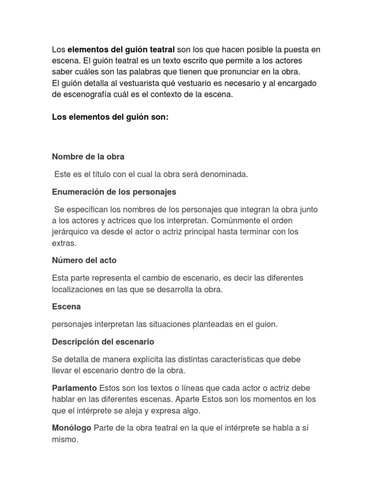 Elementos Del Guion Teatral Pdf Teatro Entretenimiento General