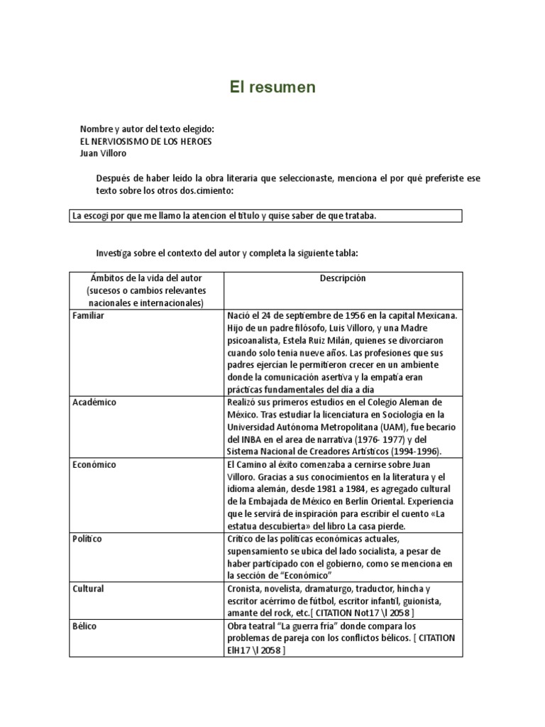 Texto Elegido El Nerviosismo De Los Heroes Documentos De Investigacion Itzelcruz17