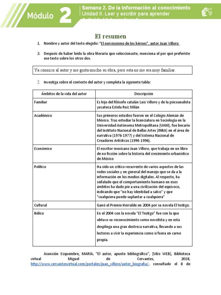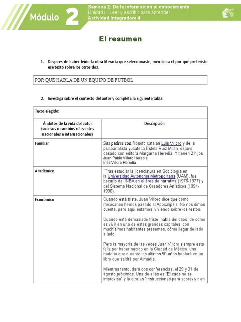 Vazquezmu U00f1oz Josedejesus M2s2ai4 Docx Semana 2 De La Informaci U00f3n Al Conocimiento Unidad Ii Leer Y Escribir Para Aprender Actividad Integradora 4 El Course Hero