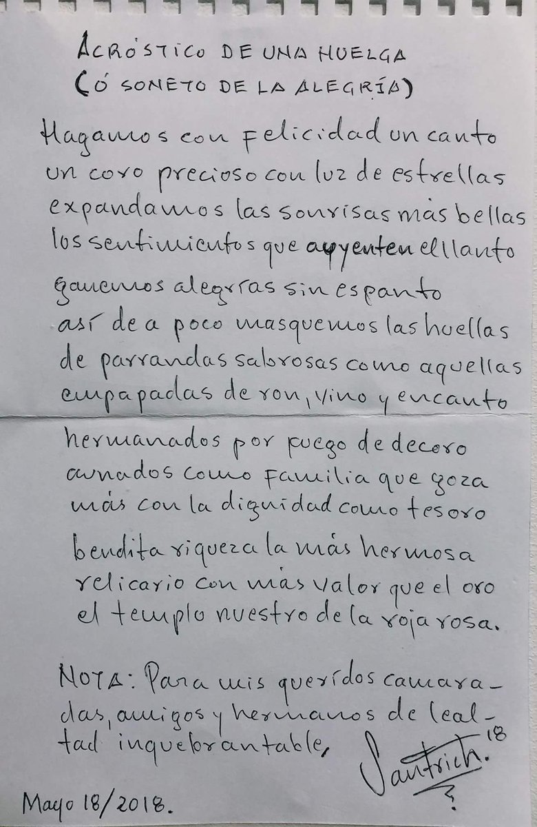 Lazos De Dignidad On Twitter Acrostico De Una Huelga O Soneto De La Alegria Bendita Riqueza La Mas Hermosa Relicario Con Mas Valor Que El Oro El Templo Nuestro De La Roja
