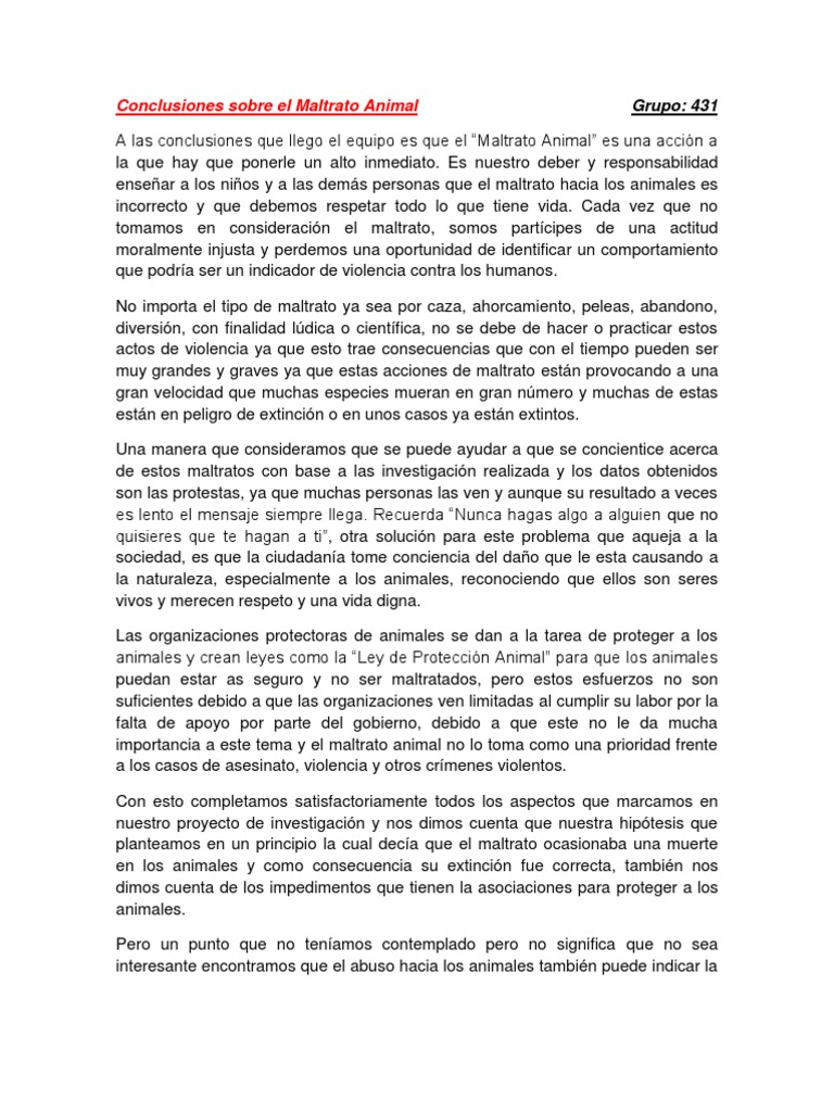 Conclusiones Sobre El Maltrato Animal Grupo Pdf Crueldad Hacia Los Animales Abuso Infantil