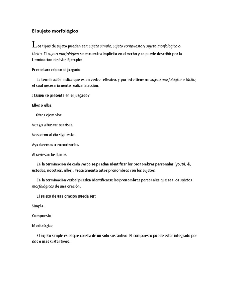 Oracion Con Sujeto Morfologico
