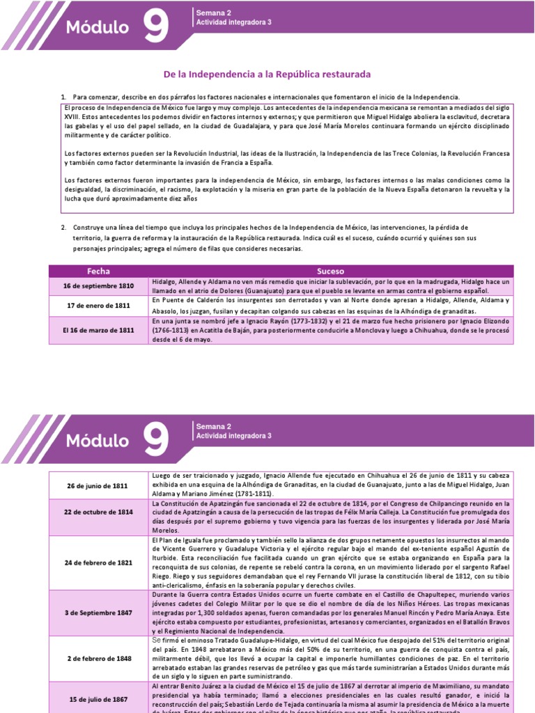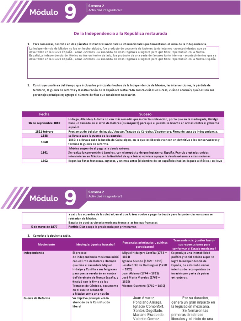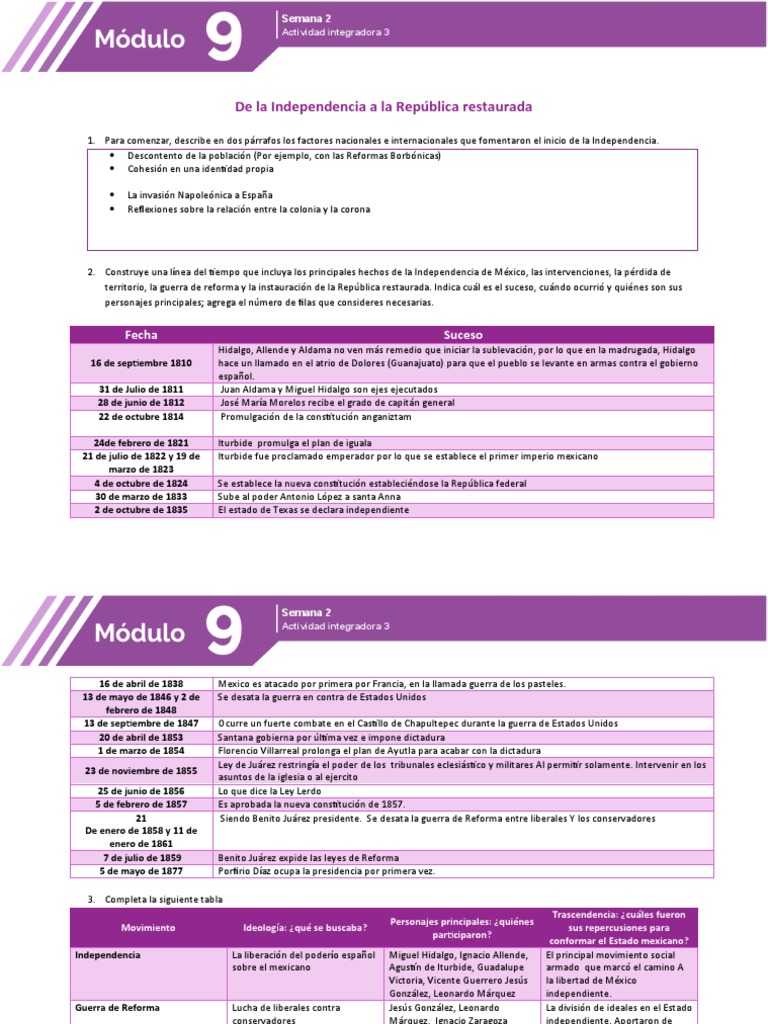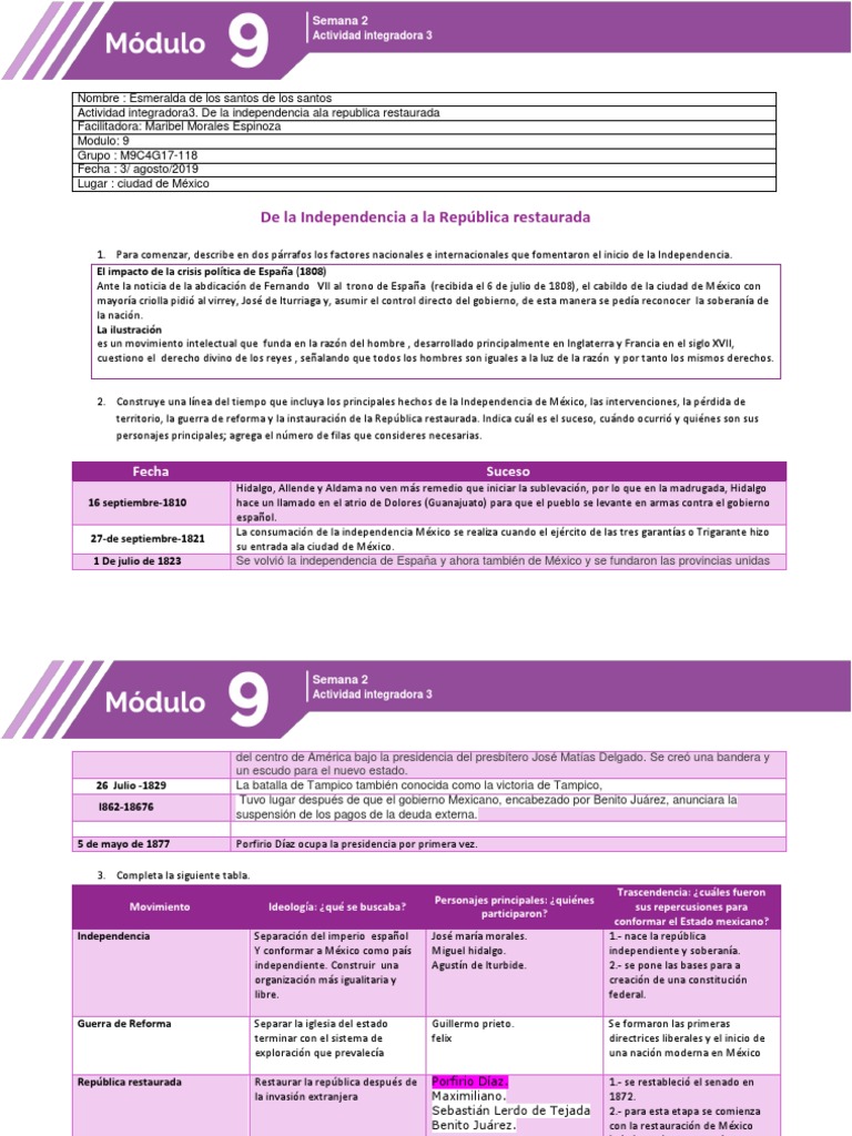 P U00e9rez Avalos Erika Yulissa M09s2ai3 Docx Semana 2 Actividad Integradora 3 De La Independencia A La Rep U00fablica Restaurada 1 Para Comenzar Describe En Course Hero
