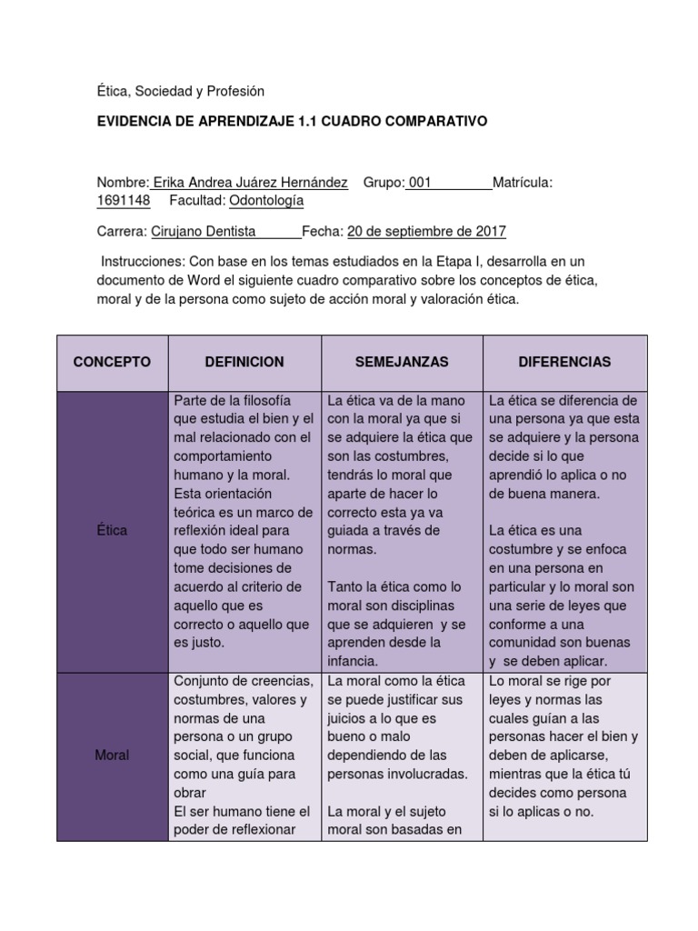 Cuadro Comparativo Etica Moral Moralidad Filosofia F1002 Ujat Studocu