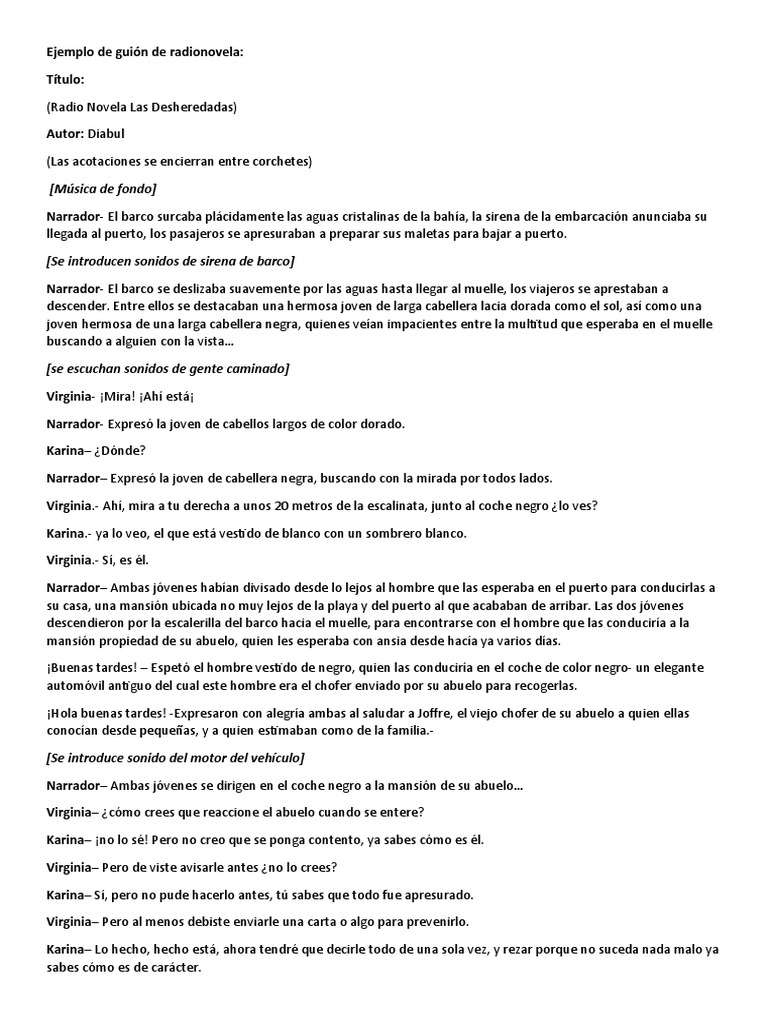 Ejemplos De Guiones Para Radionovela Core Un Guion De Radionovela Es Semejante A Un Guion De