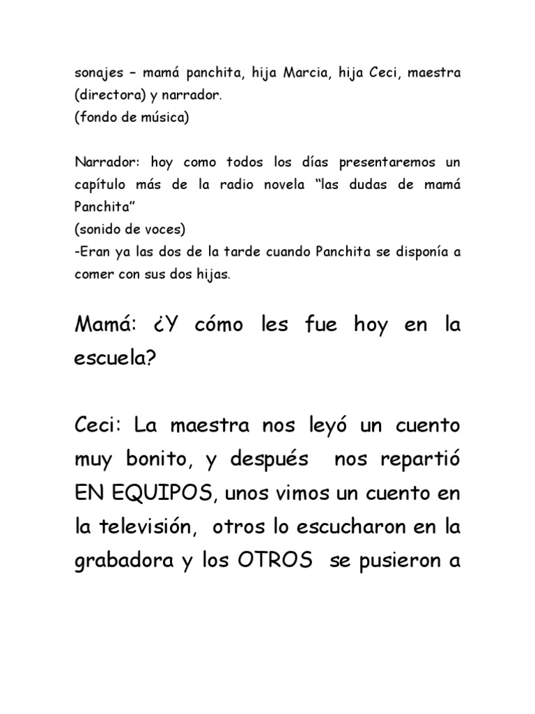 Guion para radio novela. Page number 2 2. Sólo que en este en lugar de indicar algunos desplazamientos se indican efectos sonoros. Saltar a página.