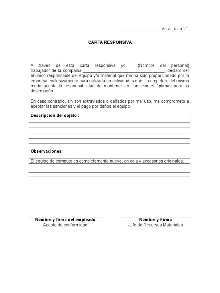 Carta Responsiva De Equipo Formatos Y Ejemplos Word Para Imprimir
