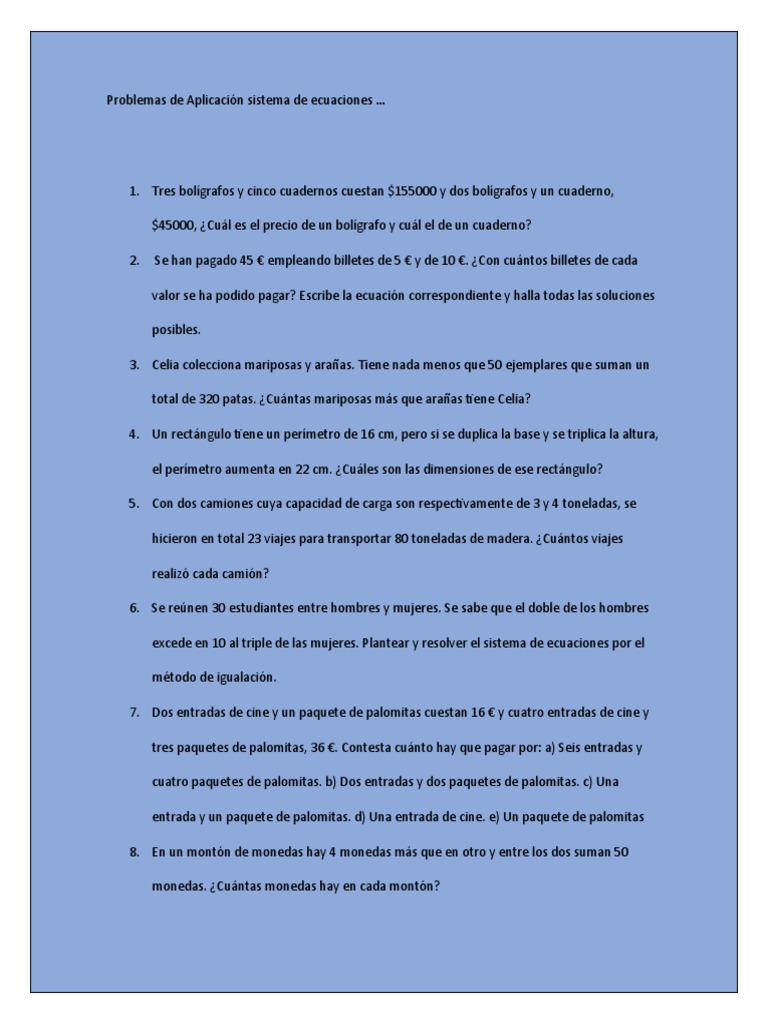 Problemas Sistema 2x2 Curso 2020 Ensenanza De Matematica