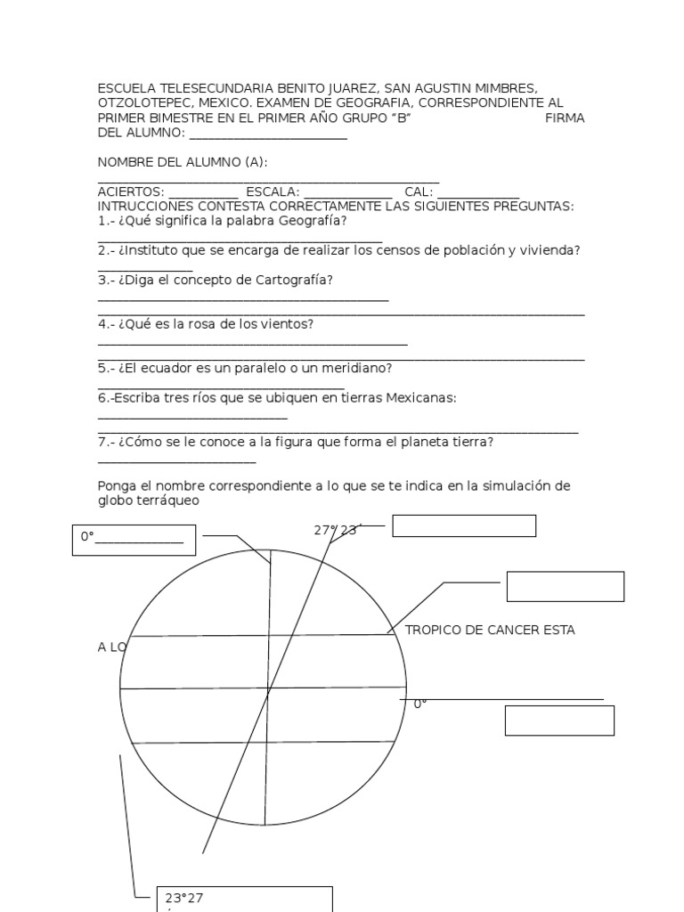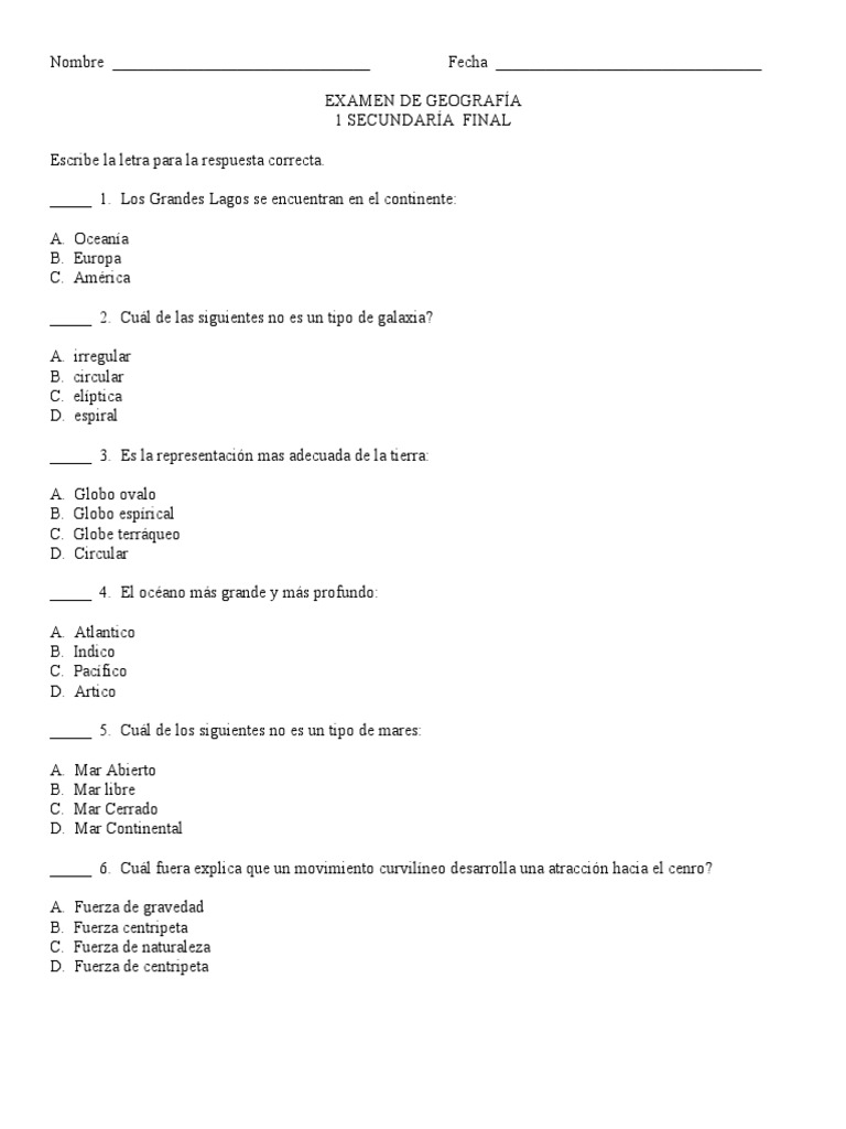 Download as DOC PDF TXT or read online from Scribd. 2016 by mony_acosta_1 in Taxonomy_v4 Science Mathematics. Save Save Primero de Secundaria Geografía 1 - Examen final For Later.