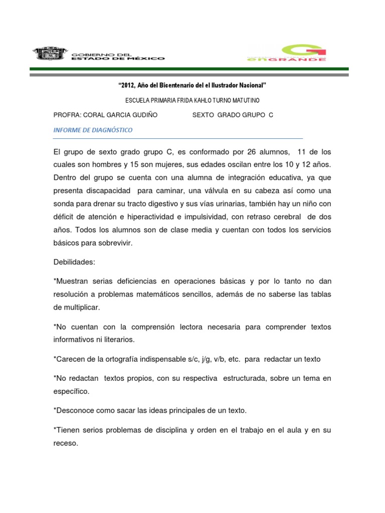 Informe De Diagnostico De Sexto Grado Grupo C 2013 Pdf