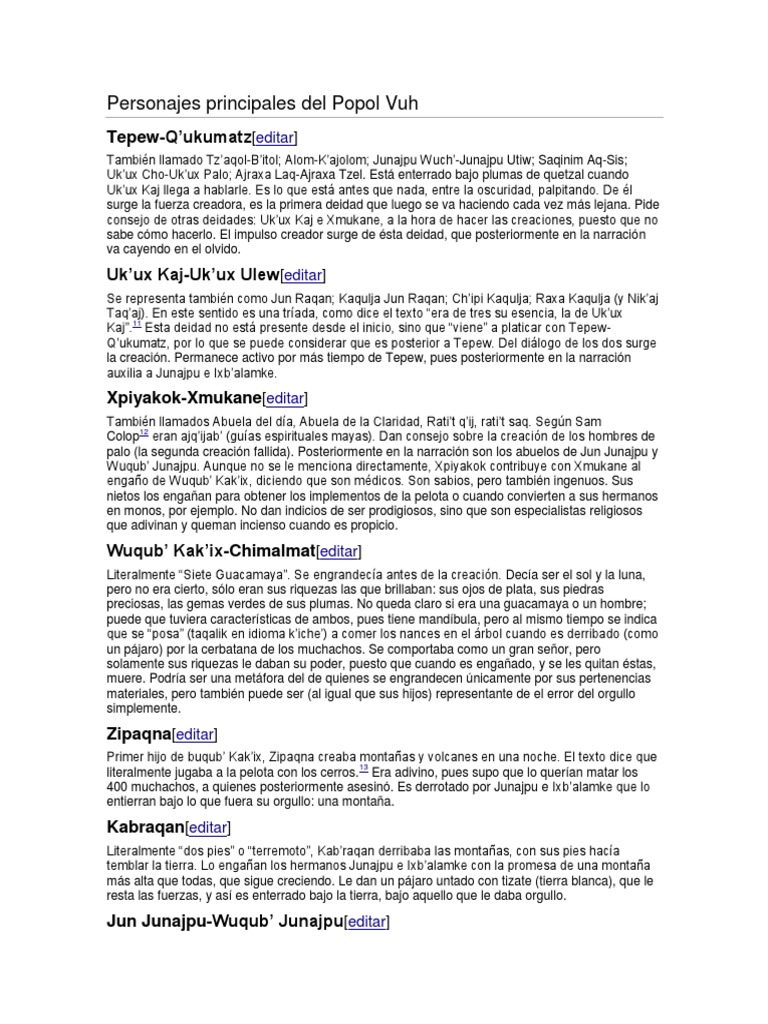 Personajes Principales Del Popol Vuh Pdf Pueblos Indigenas De America Central Mesoamerica