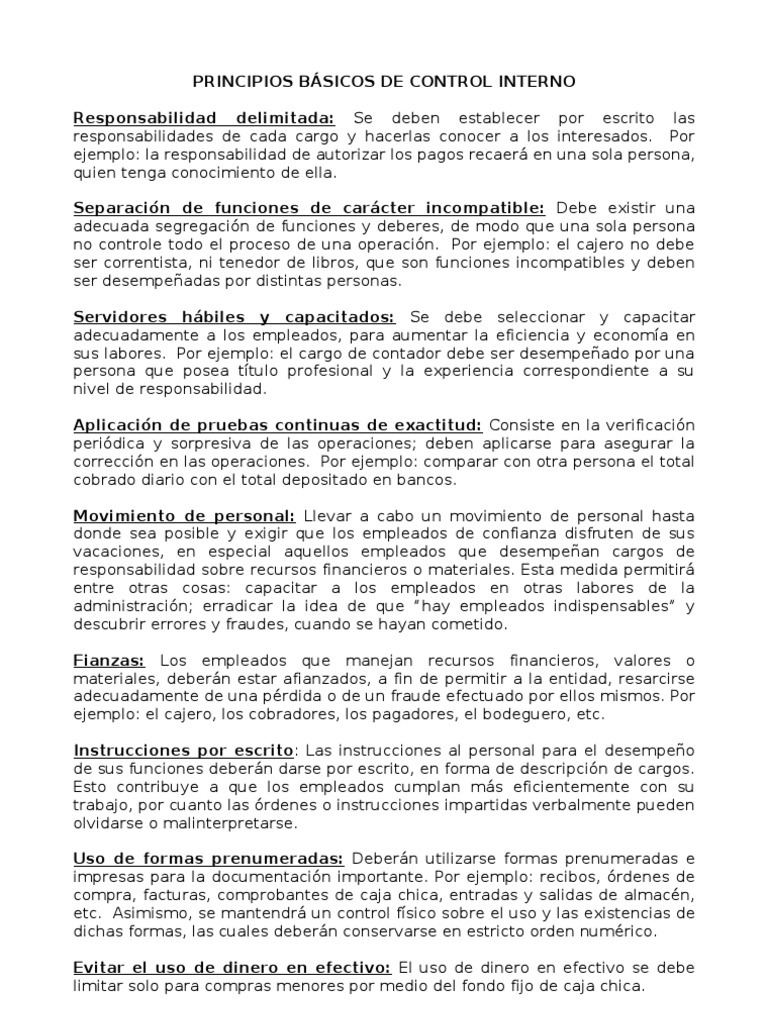 Principios De Control Interno Pdf Dinero Efectivo