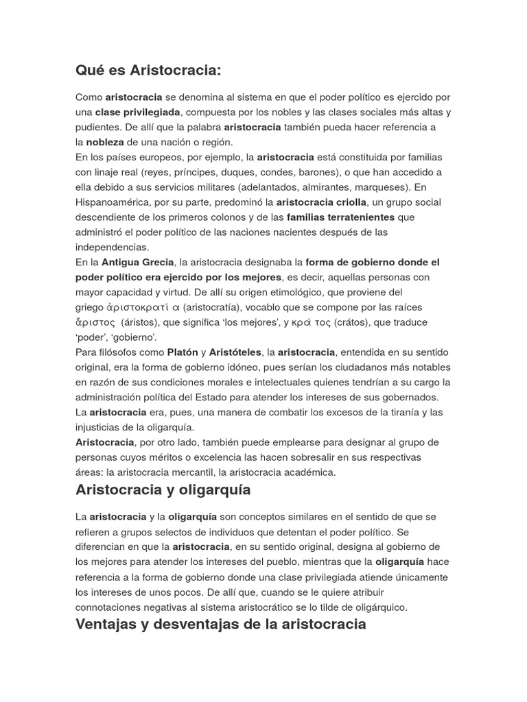 Ventajas y desventajas de la aristocracia. 2 Ver respuestas Publicidad Publicidad kathleenvrg kathleenvrg Ventajas. La riqueza era privilegio de los aristócratas. Ventajas y desventajas de la aristocracia.