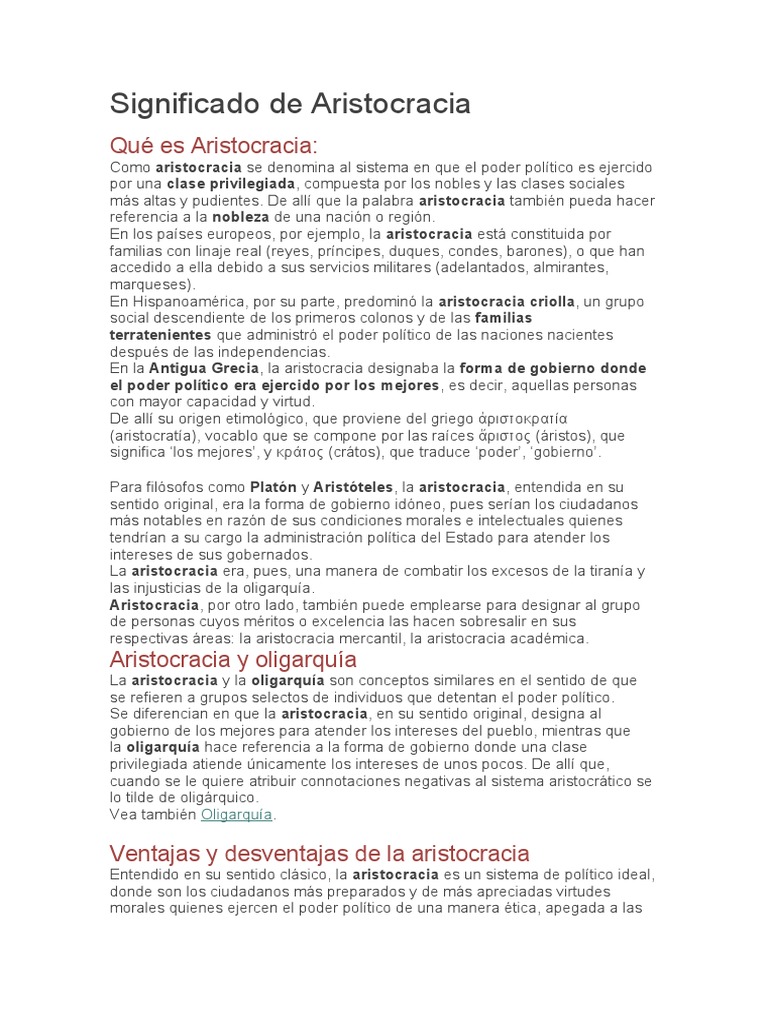 Significado De Aristocracia Teorias Politicas Formas De Gobierno