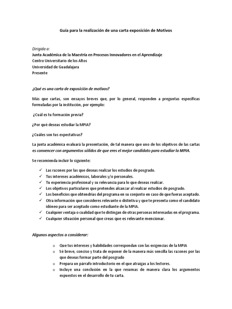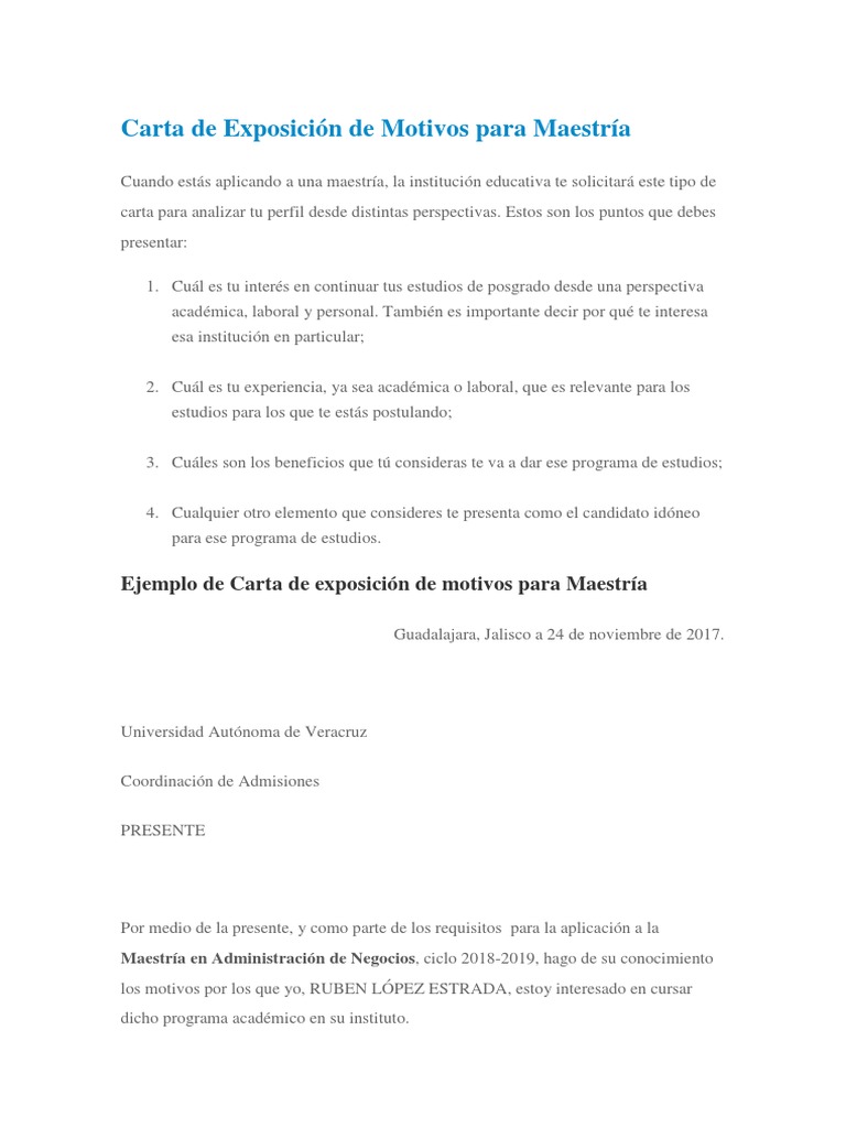 Carta De Exposicion De Motivos Para Maestria Web Oficial