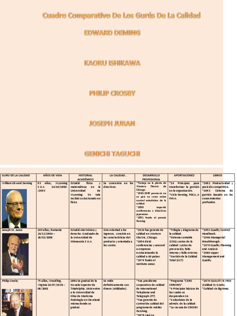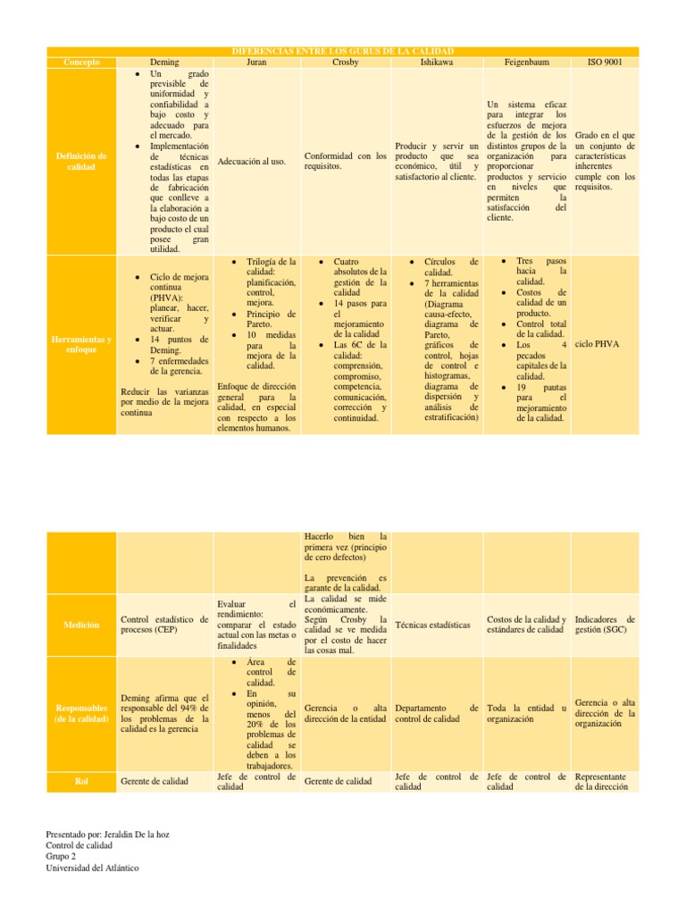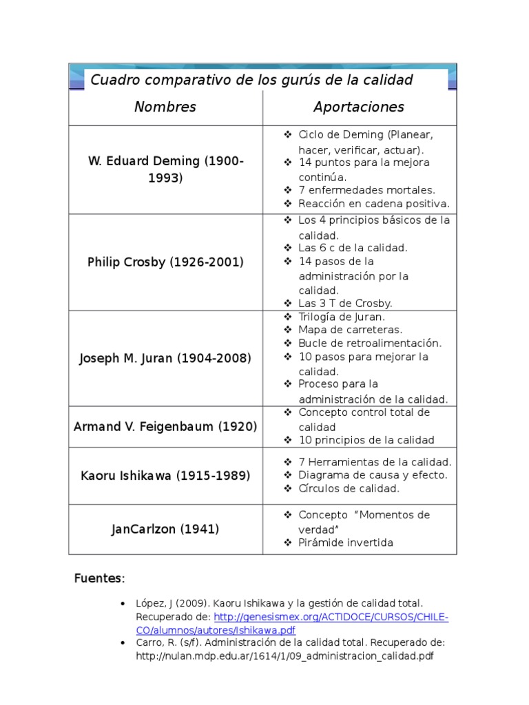 Cuadro Comparativo De Los Gurus De La Calidad Pdf