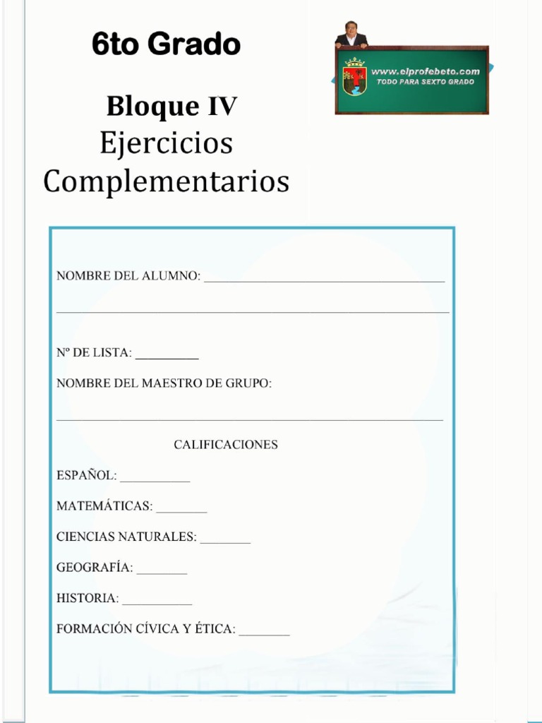 6to Grado Bloque 4 Ejercicios Complementarios On23dv0w6pl0