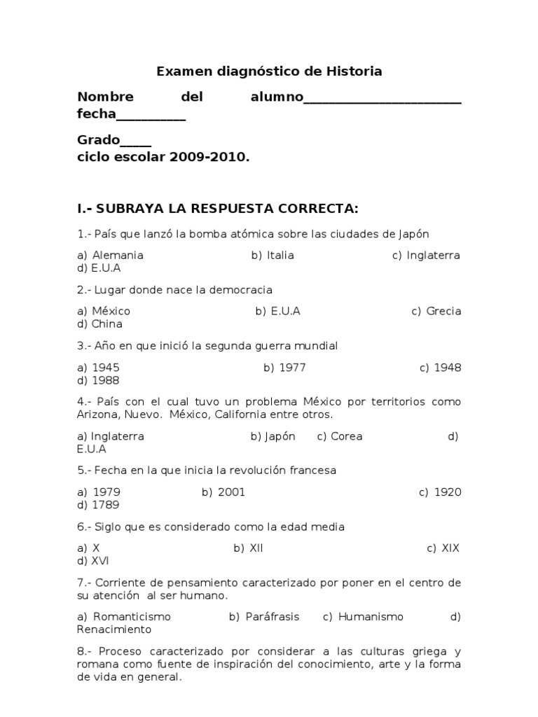 Examen diagnostico de historia 1 de secundaria. DOWNLOAD Examen Diagnostico Historia 1 Secundaria new. Contenido de cada examen diagnóstico Una obra de teatro es. NOMBRE DEL ALUMNO_____ GRUPO_____ INSTRUCCIONES.