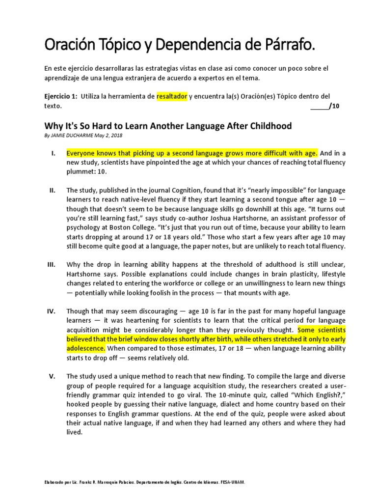 Oracion Topico Y Dependencia De Parrafo First Language Language Acquisition