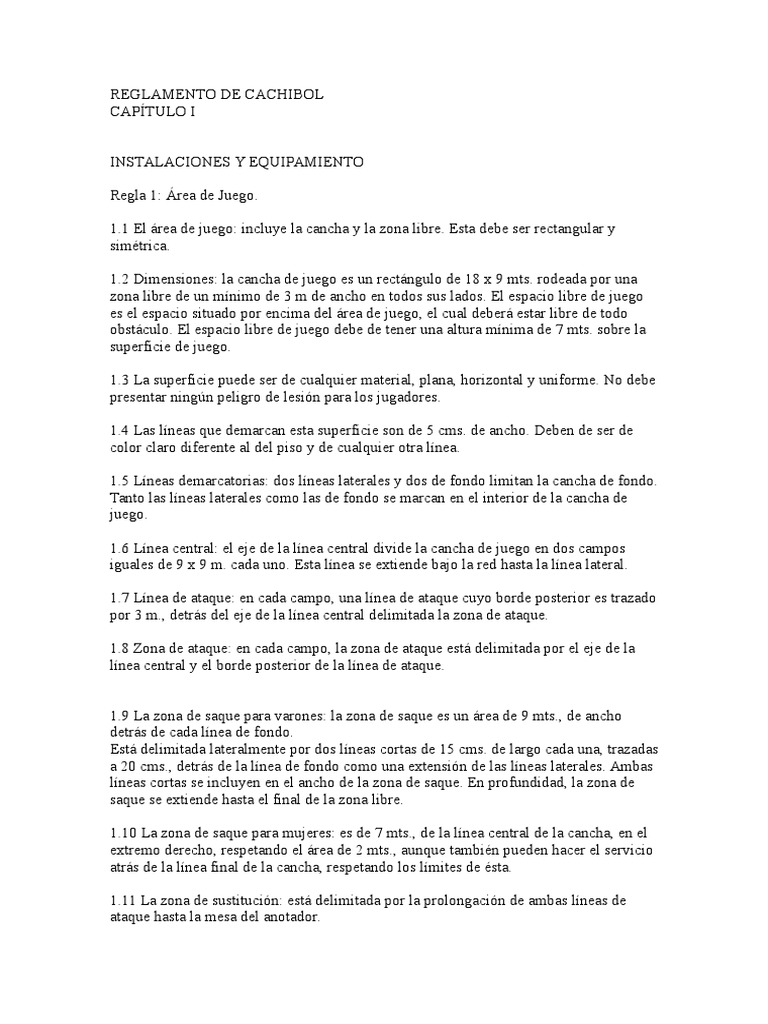 Cuales son las reglas del cachibol. Sobre la superficie de juego. Incluye la cancha y la zona libre. Reglamento de voleibol 41- La Superficie La superficie de la.