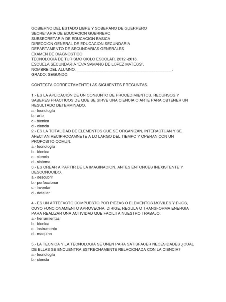 Guía de examen de Tecnología de 1 de Secundaria 1-Se refiere a la reflexión de las alternativas planes que anteceden a la realización de una práctica lo que le permite la toma de. Primer grado secundaria Edad. GuIA DE PREGUNTAS PARA EXAMEN TECNOLOGIA.