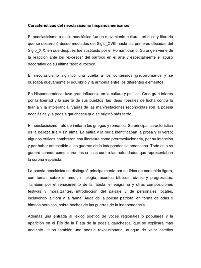 Caracteristicas Del Neoclasicismo Hispanoamericanos Pdf Poesia Artes General