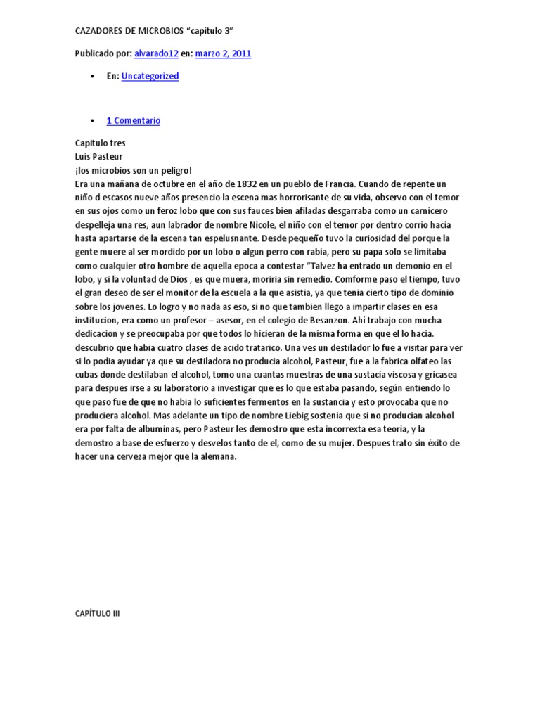 Resumen De Los Capitulos De Los Cazadores De Microbios Pdf Luis Pasteur Microorganismo