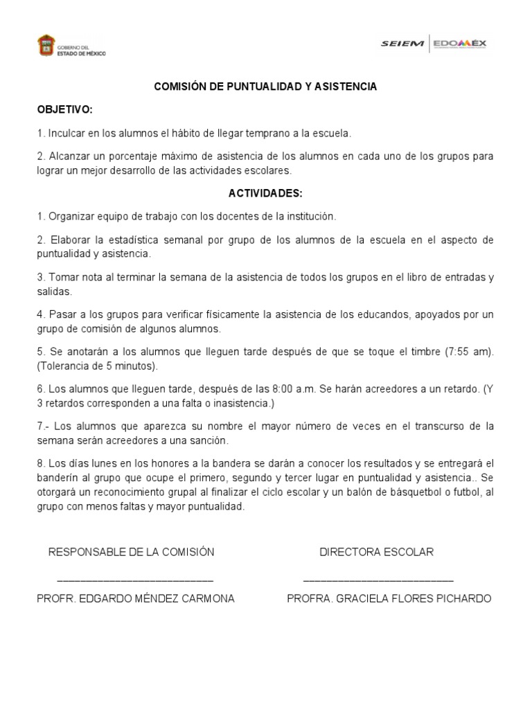 Comision De Puntualidad Y Asistencia En La Escuela Primaria