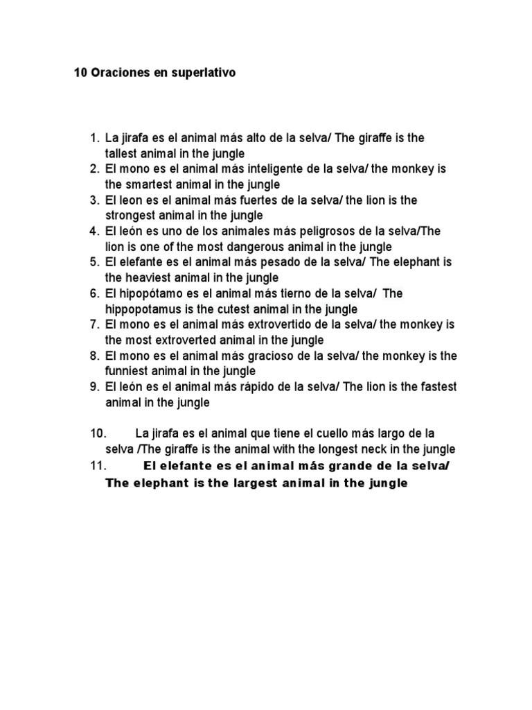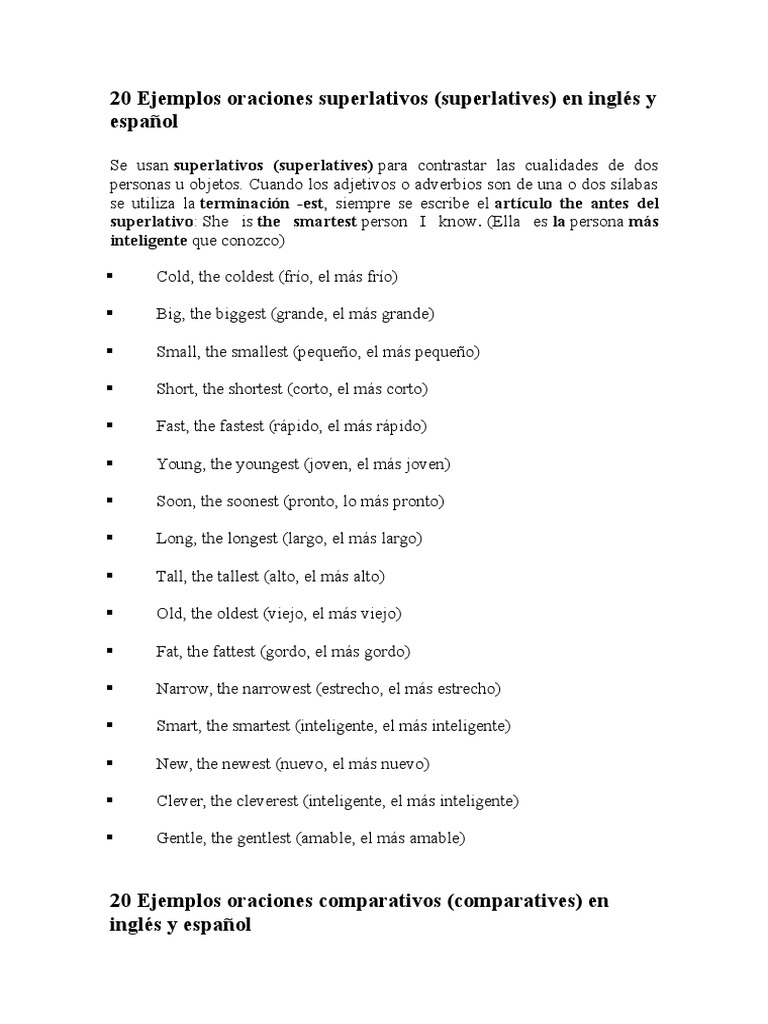 10 Oraciones Superlativas En Ingles Y Espanol Pdf