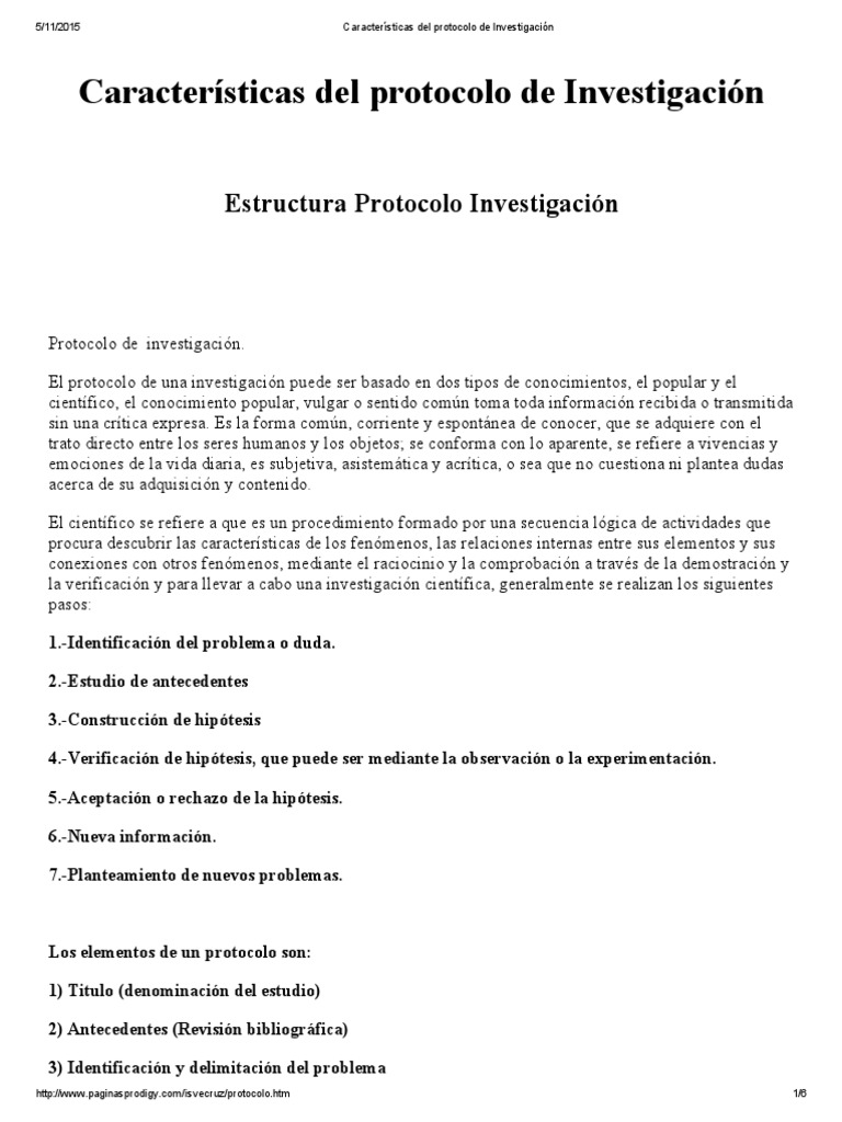 Caracteristicas Del Protocolo De Investigacion Pdf Teoria Hipotesis