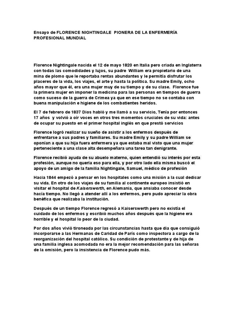 Ensayo De Florence Nightingale Pionera De La Enfermeria Profesional Mundial Pdf Ruisenor De Florencia Enfermeria