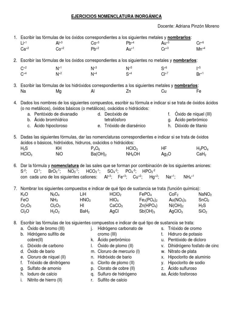 Taller Nomenclatura Inorg Pdf Acido Compuestos Quimicos