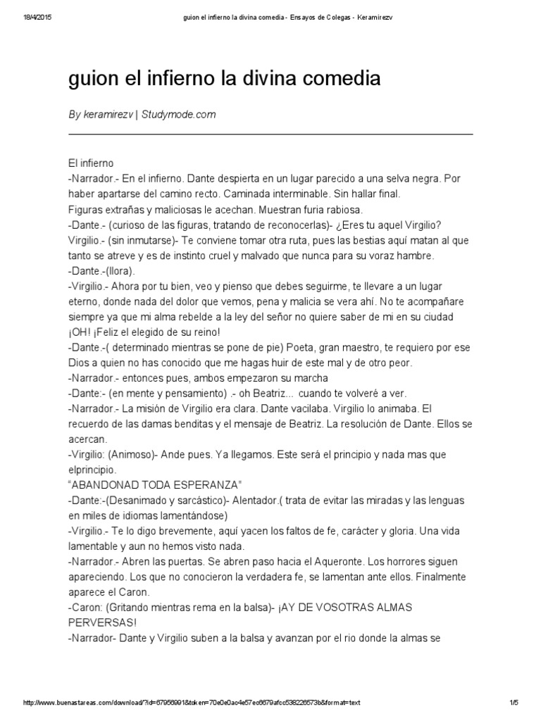Guion El Infierno La Divina Comedia Ensayos De Colegas Keramirezv Pdf On231zomx3l0