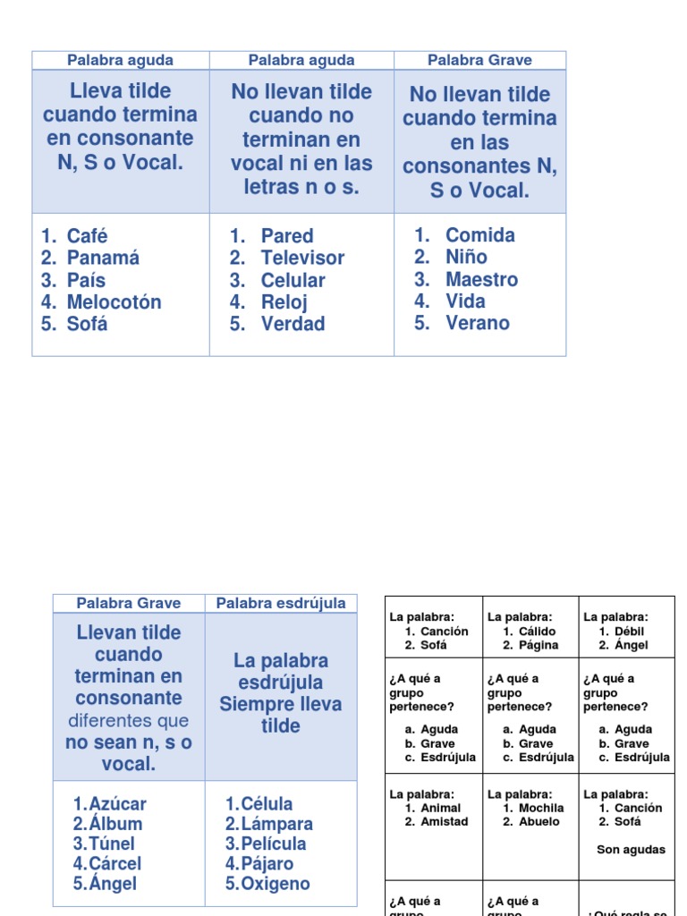 Spanish Use Of Accent Marks Palabras Agudas Graves O Llanas Y Esdrujulas