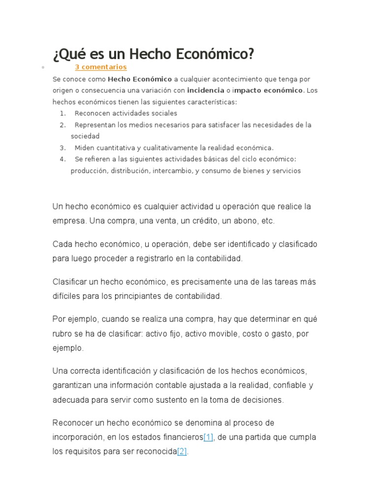 Que es un hecho economico. Naturales sociales físicos y paranormalesEl hecho económico es la representación y reconocimiento de un. Una compra una venta un crédito un abono etc.