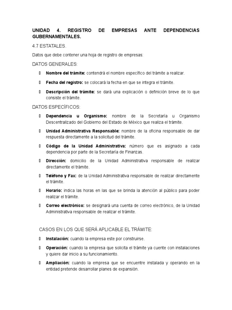 Unidad Iv Registro De Empresas Ante Dependencias Gubernamentales Pdf Txt