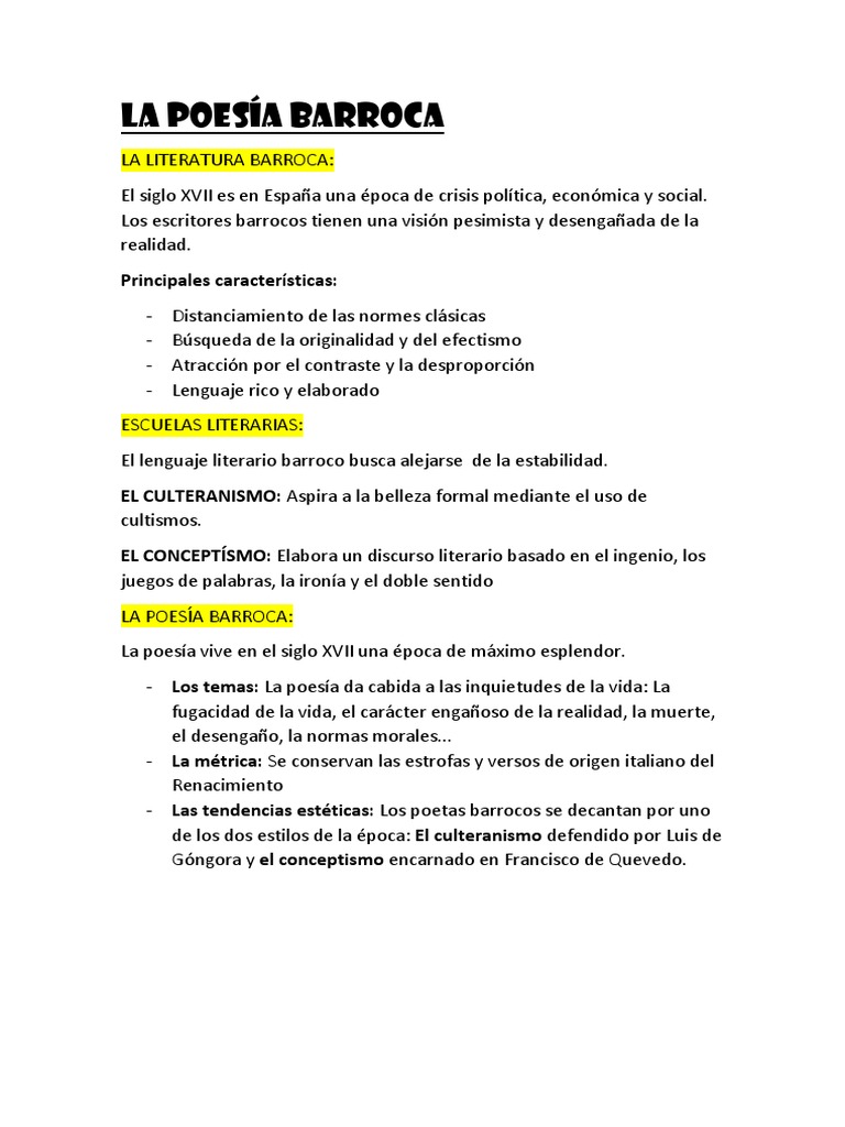 Caracteristicas de la poesia del barroco 04072021 Lal exageración los contrastes y lal temática pesimista caracterizan la poesíal barrocal dentro del lal cual las disputas literarias entre tanto Quevedo y Góngoral marcaron un hito en el Siglo de. Es una comparación que consiste en relacionar dos términos por medio de.
