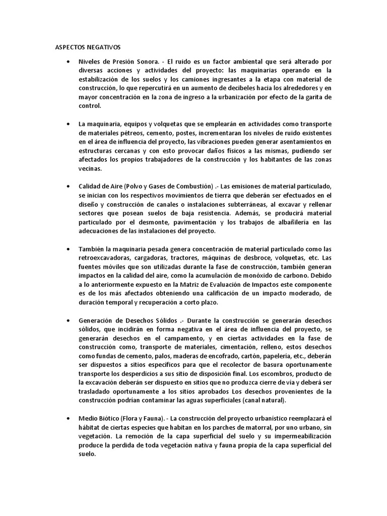 Aspectos Positivos Y Negativos Construccion De Viviendas Pdf La Contaminacion Del Aire Residuos
